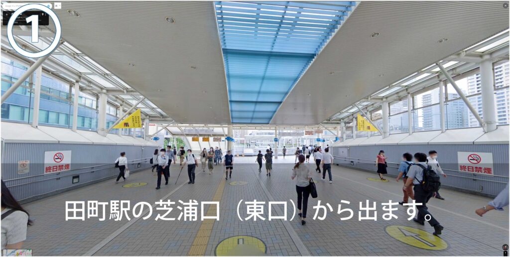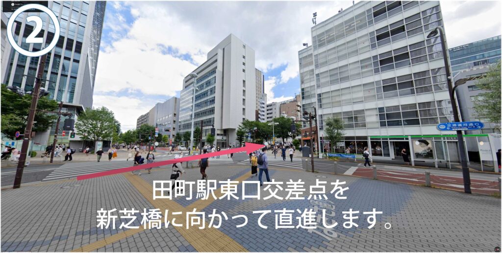 JR田町駅の芝浦口(東口)から田町駅東口交差点を新芝橋に向って直進し、